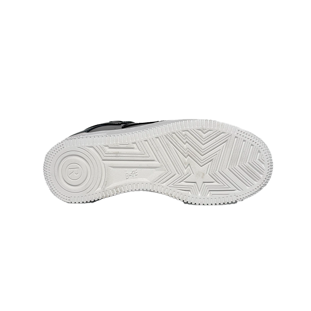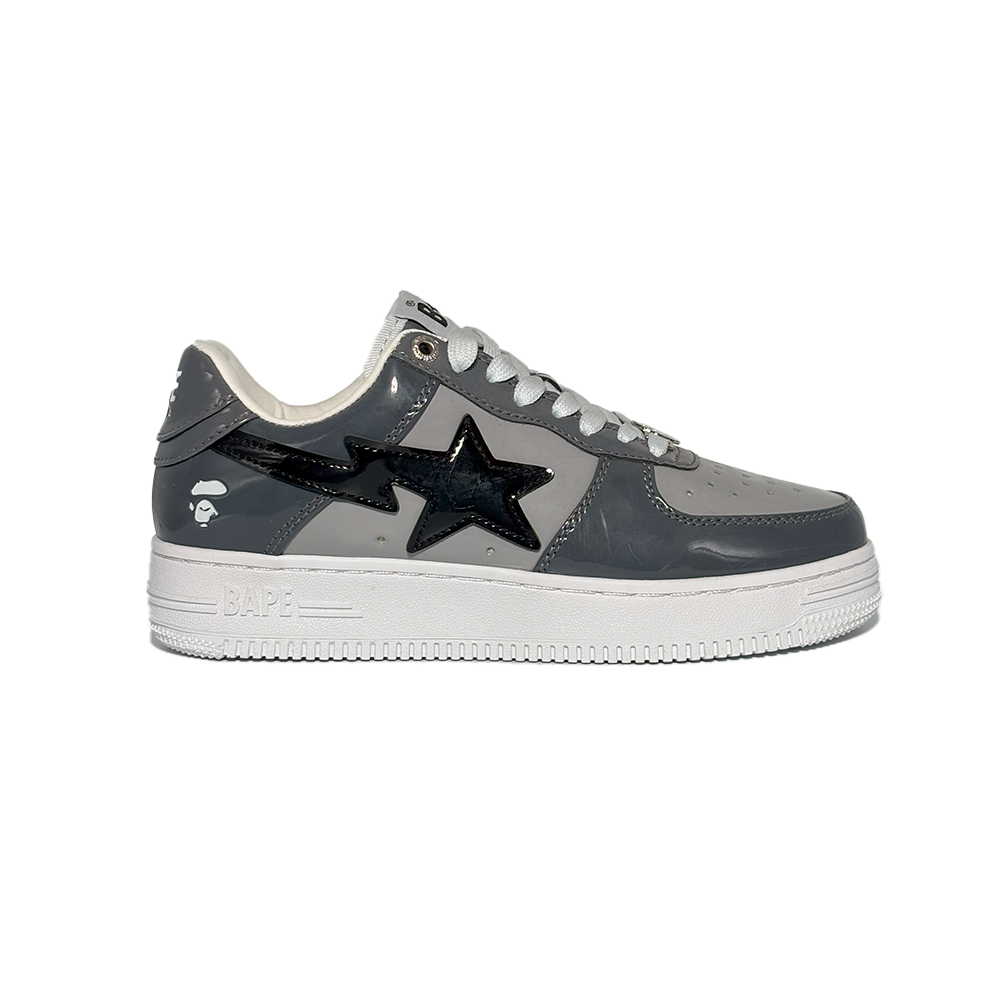 • طراحی شبیه به ایر فورس ۱ (Air Force 1): ظاهر کلی آن شباهت زیادی به مدل معروف نایک (Nike) ایر فورس ۱ دارد، اما با جزئیات و نمادهای خاص برند BAPE.