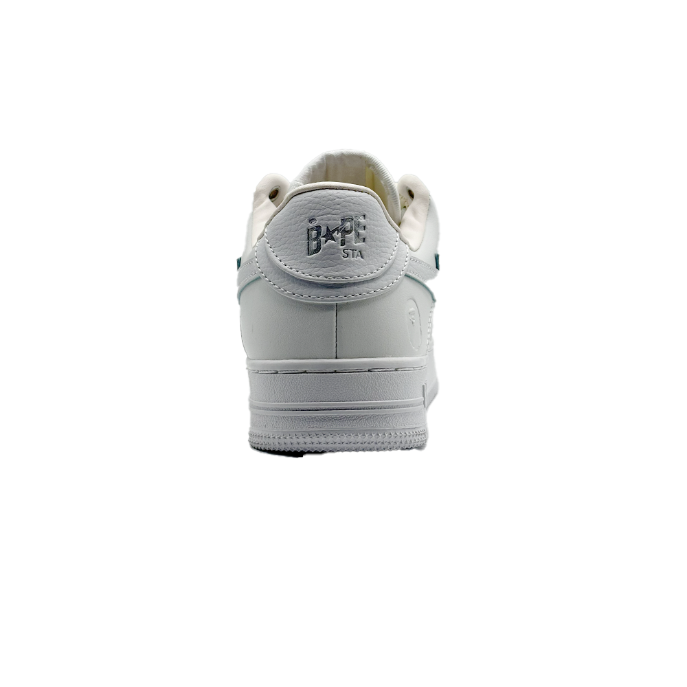 - طراحی شبیه به ایر فورس ۱ (Air Force 1): ظاهر کلی آن شباهت زیادی به مدل معروف نایک (Nike) ایر فورس ۱ دارد، اما با جزئیات و نمادهای خاص برند BAPE.