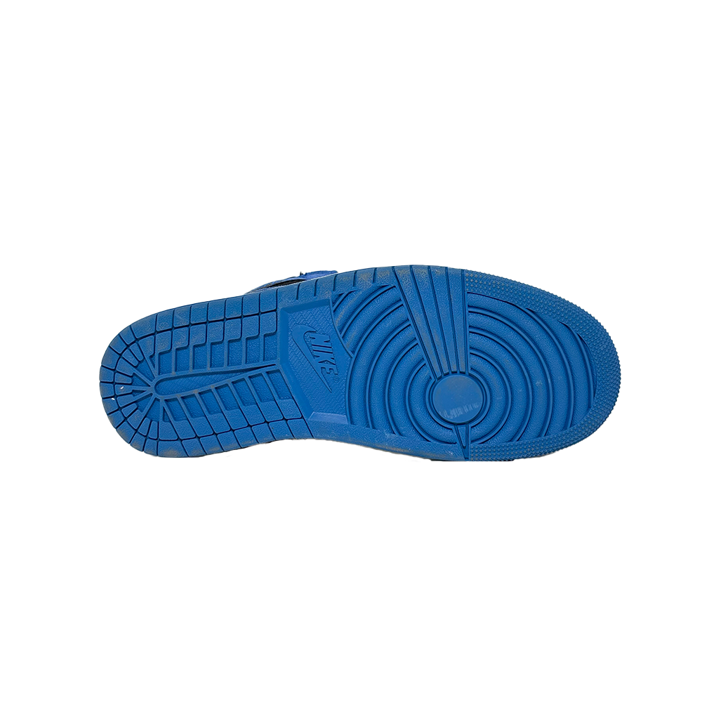 - رنگبندی کلاسیک: با وجود تغییر در متریال، طرح رنگی مشکی و آبی رویال کاملاً وفادار به نسخه اصلی باقی مانده است. این تضاد رنگی، ظاهری جسورانه و چشمگیر به کفش میدهد.
